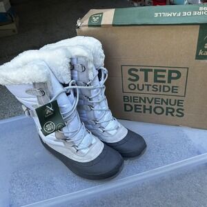 Kamik Winter Boots Womens White Gray Waterproof Faux Fur Lined 3M Thinsulate 9