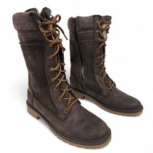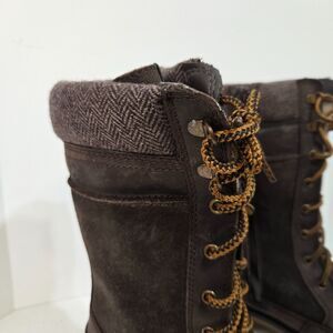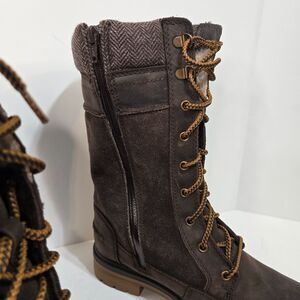 Suede / leather uppers, 1" heel, shaft is 10" tall above the heel.