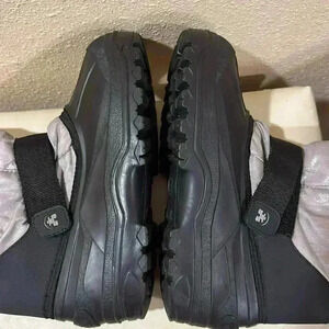 Felt lined snow boots. Velcro ankle closure for snug fit. Elastic top lock closure for snug fit. Felt lined for warmth, rubber outsoles for waterproofing. Preowned boots sold as pictured, but in great shape some piling on felt. Size 4.