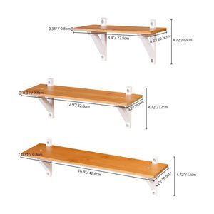Kamiler Floating Shelves Wall Mounted, Bamboo Wall Storage Shelves Set of 3, Display Ledge Decorative Floating Shelves for Bedroom, Living Room, Kitchen, Bathroom-White+Natural. New. Open box. Unused. See photos.