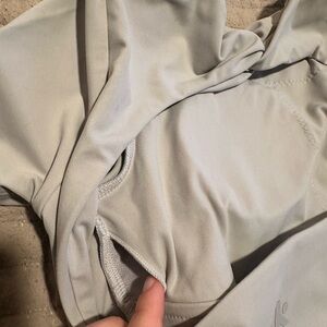 Super comfortable and stretchy material. Open back with removable pads! Never worn. Color is a mix of grey/beige.