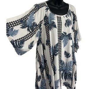 Kamohoalii Womens XXL Rayon Kaftan Top Blue Fern Tunic Scoop Aloha Hawaiian EUC