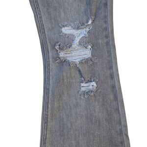Kan Can Mid Rise Button Down Fly Distressed Gray Flare Jeans NWT