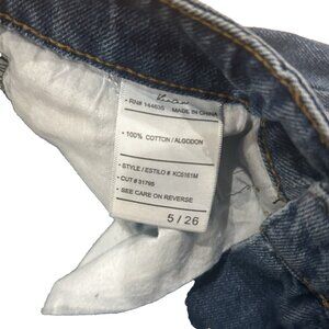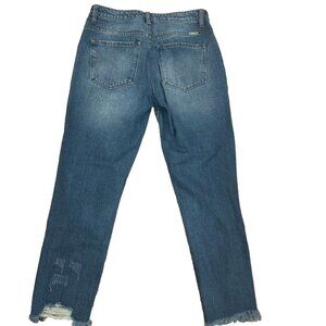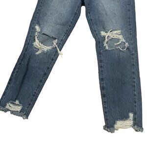 Kan Can Women's 5 /26" Distressed Denim Chewed Straight Hem Mid-Rise Jeans