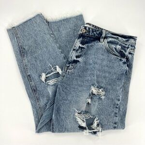 KanCan Acid Wash High Rise Distressed Mom Jeans Fray Hem 15/31
