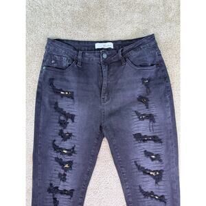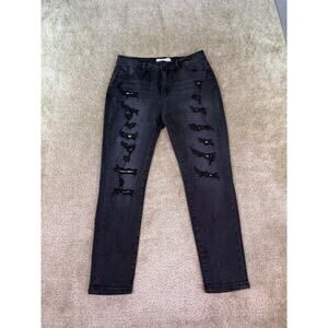 KanCan Alyssa Distressed Skinny Ankle Jean Womens JR Size 13/30 Black Denim E302