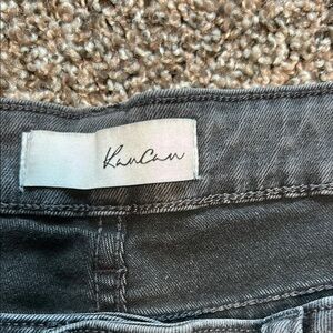 These KanCan jeans feature a sleek black color and a trendy ankle-cropped design, perfect for a modern and stylish look. The smooth denim fabric ensures comfort and a polished appearance, making them a versatile addition to any wardrobe.