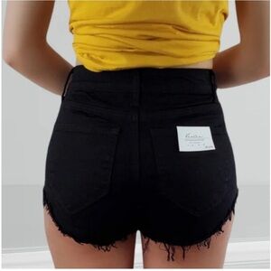 KanCan Black Cut Off Fringe Raw Hem Jean Denim Shorts Style KC6033BK Size 9/28