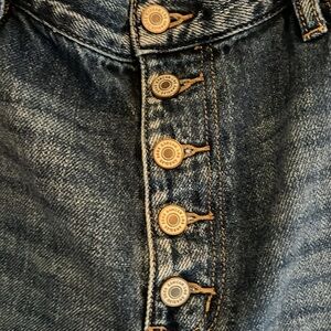 Step out in style with KanCan's blue jean shorts, featuring a high-waisted fit and a trendy distressed look. The raw hem and intentional fraying add a casual, lived-in vibe perfect for any laid-back occasion. One belt look is trying to detach, not noticeable, easily fixed. Otherwise great used condition.