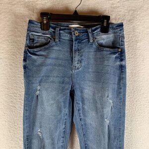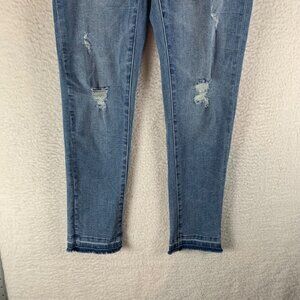 KanCan Bradwell Women's Mid Rise Distressed Blue Skinny Jeans Raw Hem Size 27 9037