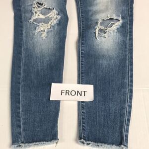 KanCan Cassandra Mid Rise Super Skinny Jeans Sz 5/26 Frayed Raw Hem Ripped Denim