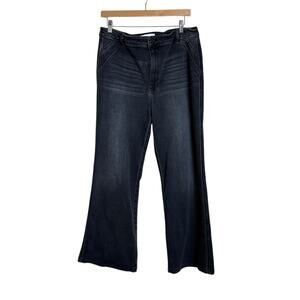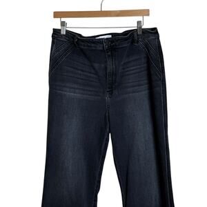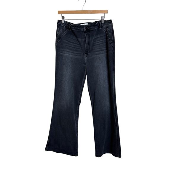 KanCan Celia Ultra High Rise Wide Flare Jeans Washed Black Denim Womens Size 31