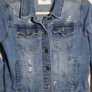 KanCan Classic Ripped Distressed Denim Jacket SIZE S