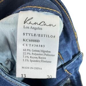 Excellent preowned condition. KanCan Medium Wash Mildly Distressed High Rise Skinny Jeans. Zipper/button closure. 5-pocket design. Cotton/polyester/rayon/spandex material. Approx. measurements: Waist 32", inseam 30", rise 11.5". Size 13/30.