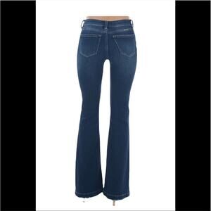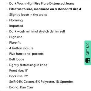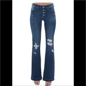 KanCan Dark Wash High Rise Button Front Ripped Knee Flare Leg Jeans Petite