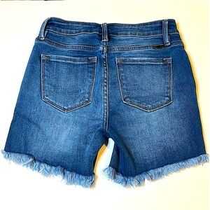 KanCan Button Up Soft Blue Denim Shorts. Frayed style with stretch. Size Small. See pictures for approximate measurements. Very good condition. Non-smoking home.