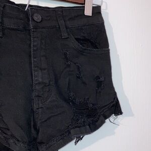 Size 25 KanCan distressed black denim shorts. 5-pocket style. Raw hem. Button/zipper closure.