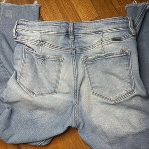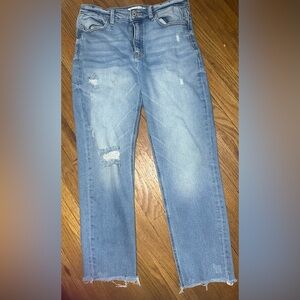 Stylish blue distressed jeans perfect for casual outings. Comfortable fit with a trendy design.