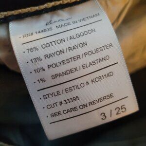 Slight wear on frayed hem but adds to the distressed look. Waist to hem = 36 inches, inseam approximately 27 inches.