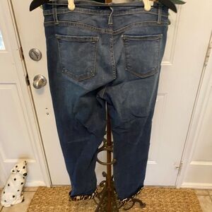 KanCan Estillo distressed animal print leopard print patch jeans, rolled cuff with leopard print.
