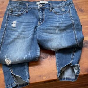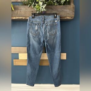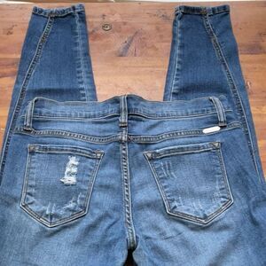 These blue skinny jeans offer a sleek silhouette with a classic fit, enhanced by natural fading for a worn-in look. The medium-weight denim ensures comfort and durability, making them a versatile addition to any wardrobe.