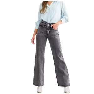 KanCan Estilo High Rise Wide Leg Jeans Mineral Wash Black Button fly 90's Y2K