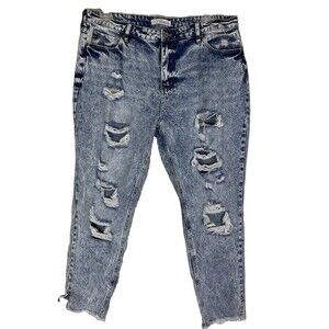 KanCan Estilo Jeans Women’s 16W Distressed Raw Hem Boho Stretch Comfort Relaxed