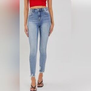 KanCan Frayed Hem Light Wash Skinny Stretchy Ankle Jeans Size 9/28