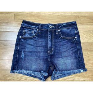 *KanCan Hi-Rise Estilo Denim Jean Shorts Womens Sm Dark Wash Raw Hem