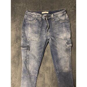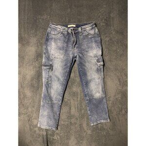 KanCan High Rise Cargo Jeans Womens Stone Wash Denim 33x25 Size 9