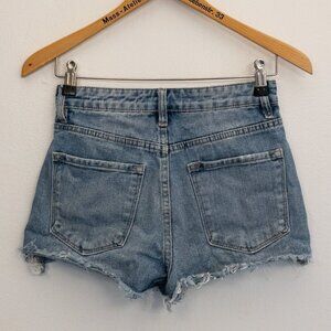 KanCan High Rise Distressed Denim Shorts Size 3/25 Frayed Raw Hem Cutoff