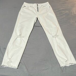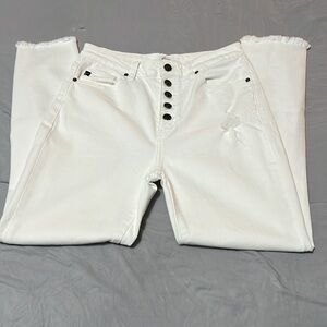KanCan High Rise Distressed Exposed Button Raw Hem Skinny Jeans