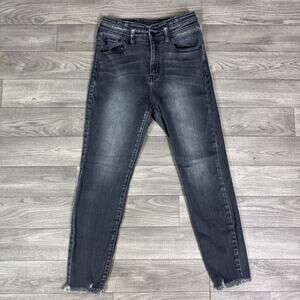 KanCan High Rise Frayed Hem Skinny Denim Jeans Gray Wash sz 27