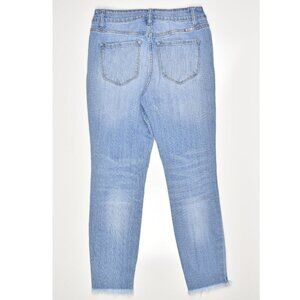 KanCAn for Maurices High Rise Light Wash Distressed Skinny Ankle Jeans. Size 27. Button and zip fly. Stretch material.