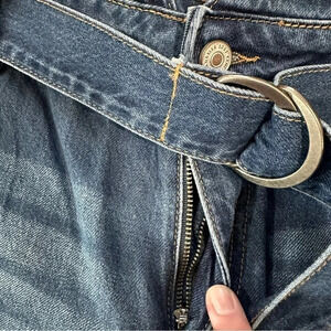KanCan High Waist Belted Distressed Medium Wash Denim Tapered Leg Size 1/24 NWT