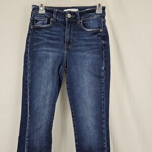 KanCan Jay High Rise Ankle Skinny Jeans Womens 5 / 26 Blue Stretch Fringe Hem
