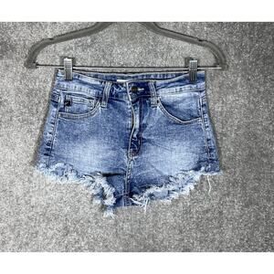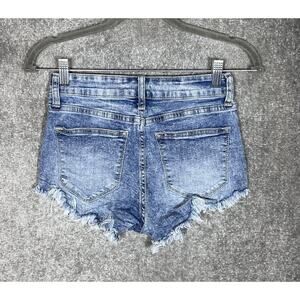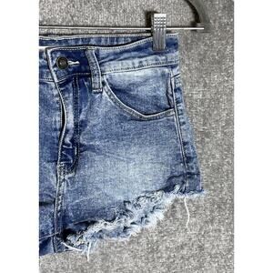 KanCan Jean Shorts Womens Juniors Size 5 Stretch Acid Wash Blue Denim Raw Hem