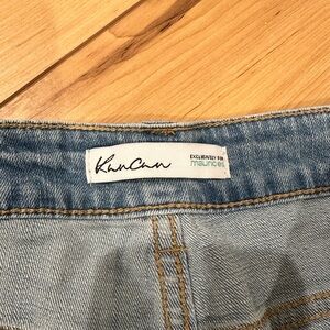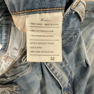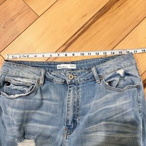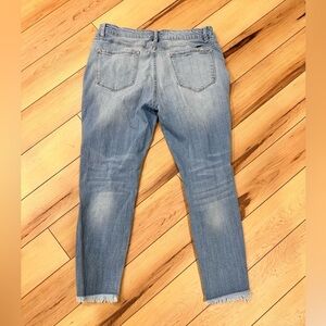 Stylish distressed blue jeans perfect for casual outings. Features a trendy ripped design for a modern look.