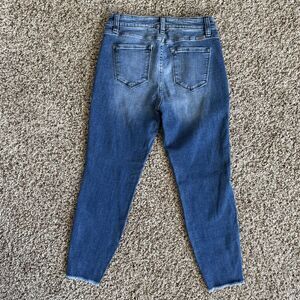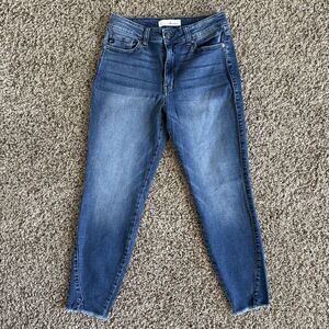 KanCan Jeans 9/28 Mid-Rise Skinny Ankle Blue Denim Frayed edge & slit #KC8558M
