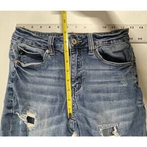 KanCan Jeans Junior Size 5 / 26 Blue Denim Distressed Mid Rise Ripped PUCKERING