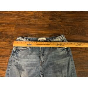 In good condition! The product is a pair of KanCan Jeans in size 11/29, featuring a high rise skinny fit with stretch for comfort. The light wash denim fabric is accented with buttons, zippers, and logos, and has a mid-rise waist. These jeans have a 5-pocket design, a regular fit, and are made with a cotton-spandex blend. Perfect for all seasons, these stylish jeans combine classic American aesthetic with modern design elements. Made in Mexico, they are designed for juniors but are versatile for women of all sizes.