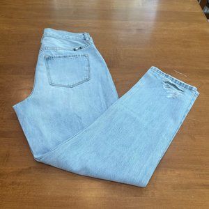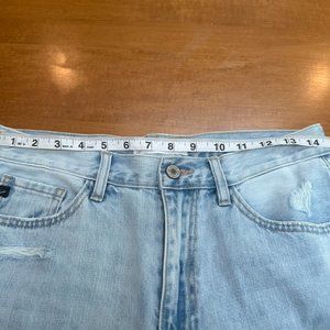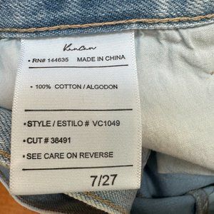 KanCan Jeans Size 7 / 27 Style #VC1049 Cut #38491 Mom Jean Straight Leg High Waist Distressed Light Wash Boho Coastal Beachy