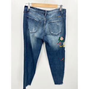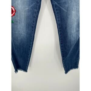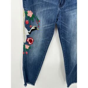 KanCan Jeans Women 11/29 Blue Floral Bird Embroidered Medium Wash Denim Raw Hem