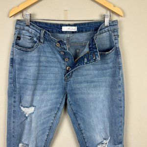 KanCan Jeans Womens 11/29 Blue Girlfriend Mid Rise Distressed Denim Button Fly