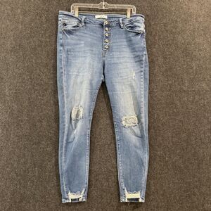 KanCan Jeans Womens 14 Blue High Rise Distressed Button Fly Stretch Skinny Denim
