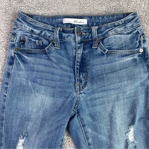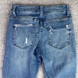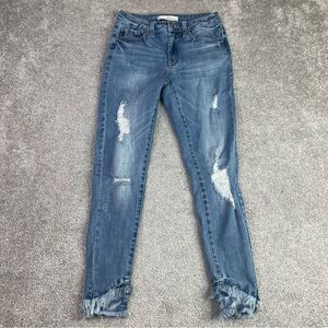 KanCan Jeans Women's 26 Blue Skinny Low Rise Frayed Double Hem Split Stretch
