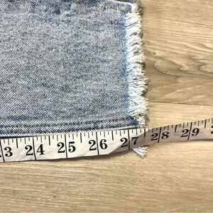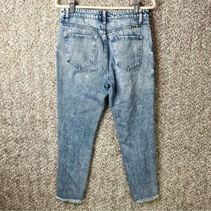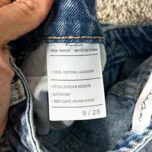 Excellent used Condition Women’s KanCan Collie High Rise Distressed Denim Blue Mom Jeans with Frayed Raw Edge Hem in Size 9/28