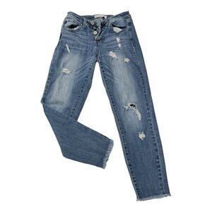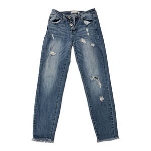 KanCan Jeans Womens 5/26 Mid Rise Skinny Button Fly Distressed Raw Hem Blue