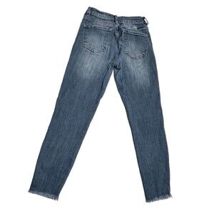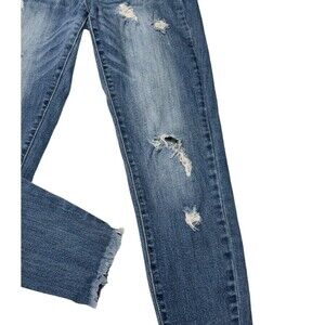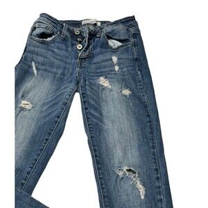 KanCan Jeans Womens 5/26 mid Rise Skinny Button Fly Distressed Raw Hem Blue