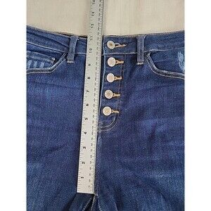 KanCan Jeans Womens 7 27 28x26 Crop Button Fly Stretch Crop Dark Blue Cuffed EUC